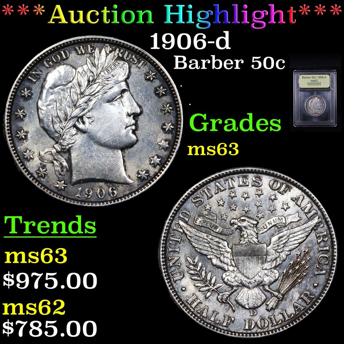 ***Auction Highlight*** 1906-d . . Barber Half Dollars 50c Graded Select Unc By USCG. A Corey's Pick, Bid to Win Coin