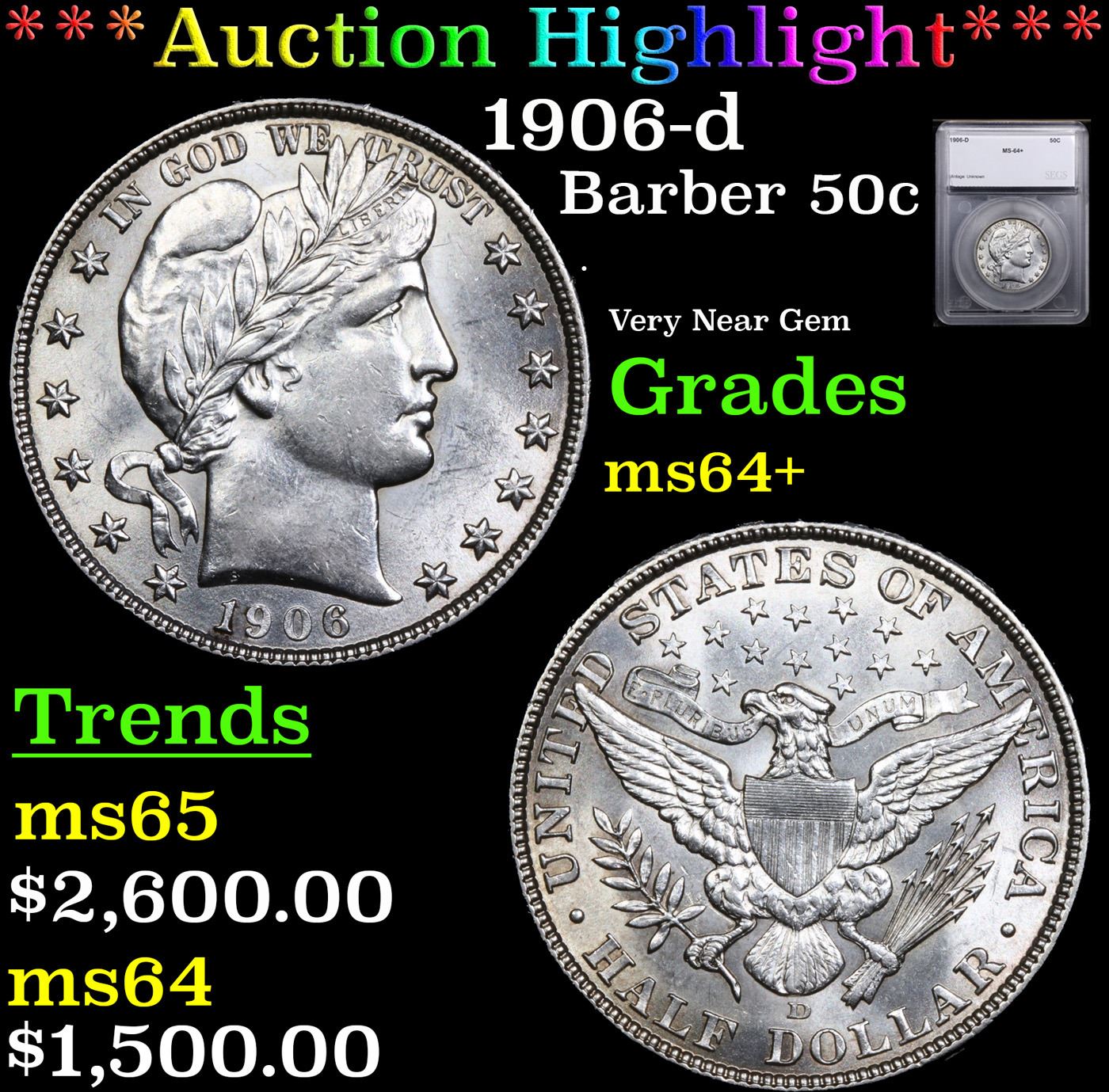 ***Auction Highlight*** 1906-d Barber Half Dollars 50c Graded ms64+ By SEGS. A Corey's Pick, Bid to Win, Don't let it get Away, you might not find its equal Coin