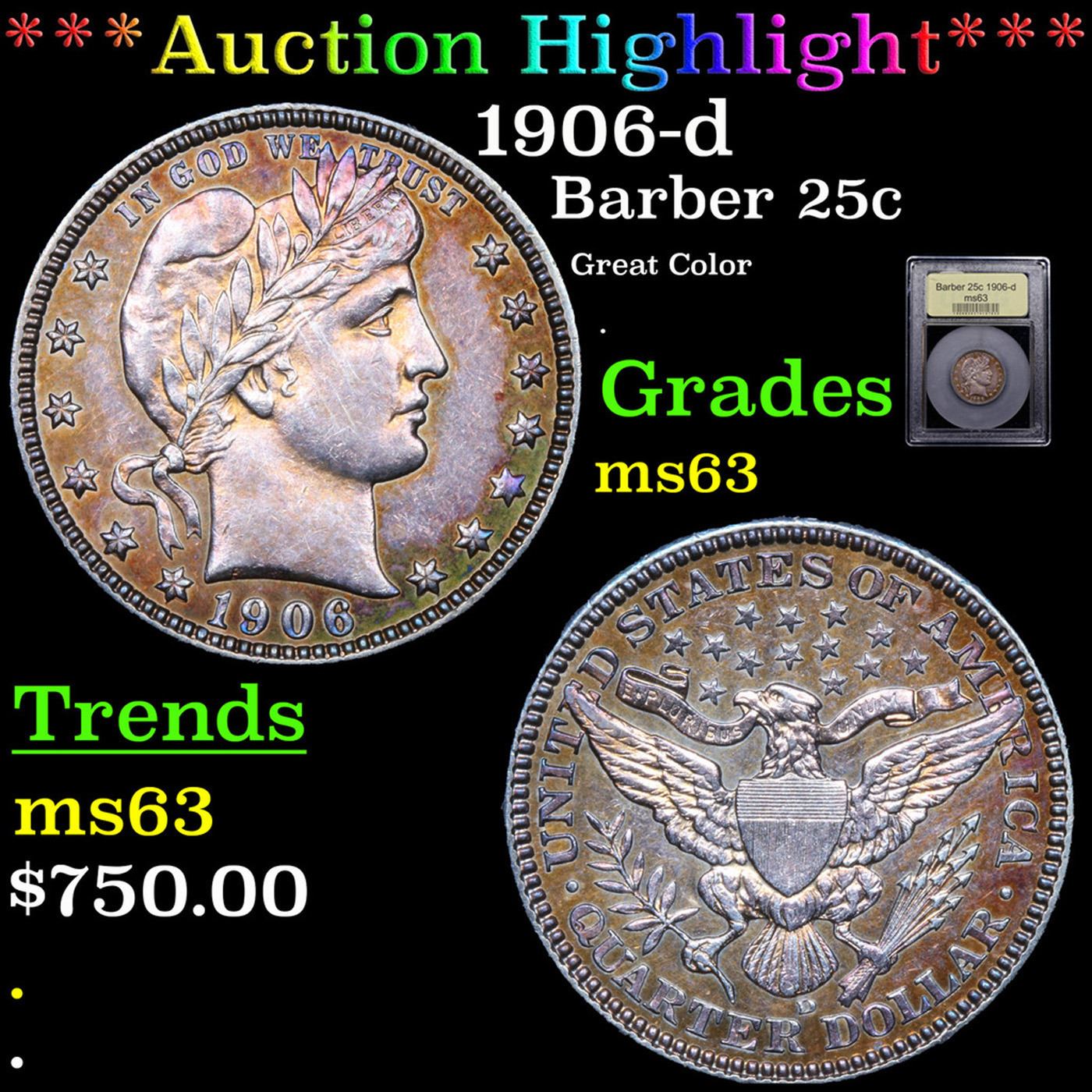 ***Auction Highlight*** 1906-d Barber Quarter 25c Graded Select Unc BY USCG. A Key Date's Pick, Bid to Win Coin
