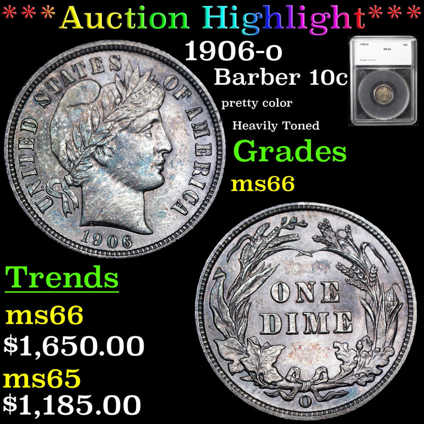 ***Auction Highlight*** 1906-o Barber Dime 10c Graded ms66 By SEGS.