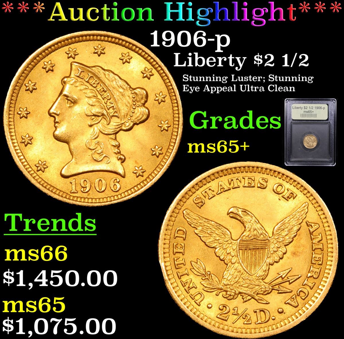 ***Auction Highlight*** 1906-p Stunning Luster; Stunning Eye Appeal Ultra Clean . Gold Liberty Quarter Eagle $2 1/2 Graded GEM+ Unc By USCG.