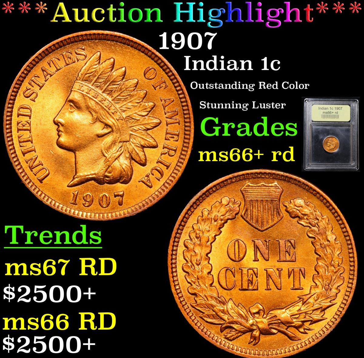 ***Auction Highlight*** 1907 Outstanding Red Color Stunning Luster Indian Cent 1c Graded GEM++ RD By USCG. A Corey's Pick, Bid to Win, Don't let it get Away Coin