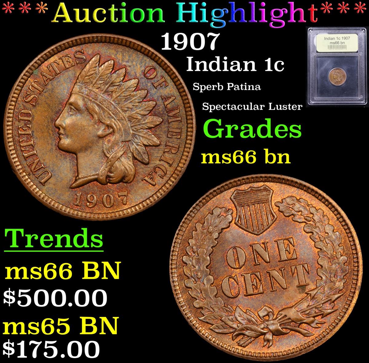 ***Auction Highlight*** 1907 Indian Cent 1c Graded GEM+ Unc BN By USCG. A Corey's Pick, Bid to Win Coin