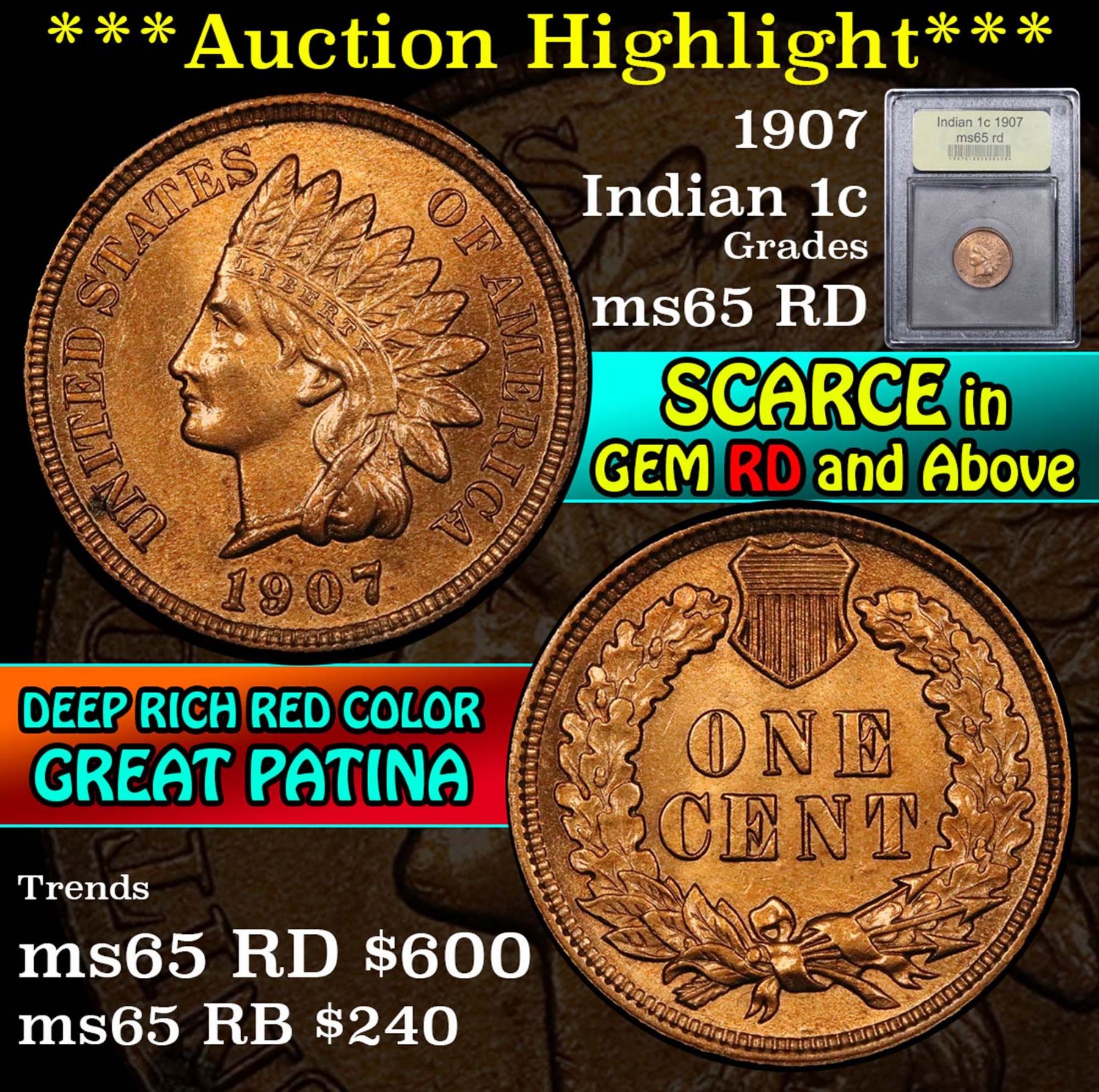 ***Auction Highlight*** 1907 Indian Cent 1c Graded GEM Unc RD By USCG. A Corey's Pick