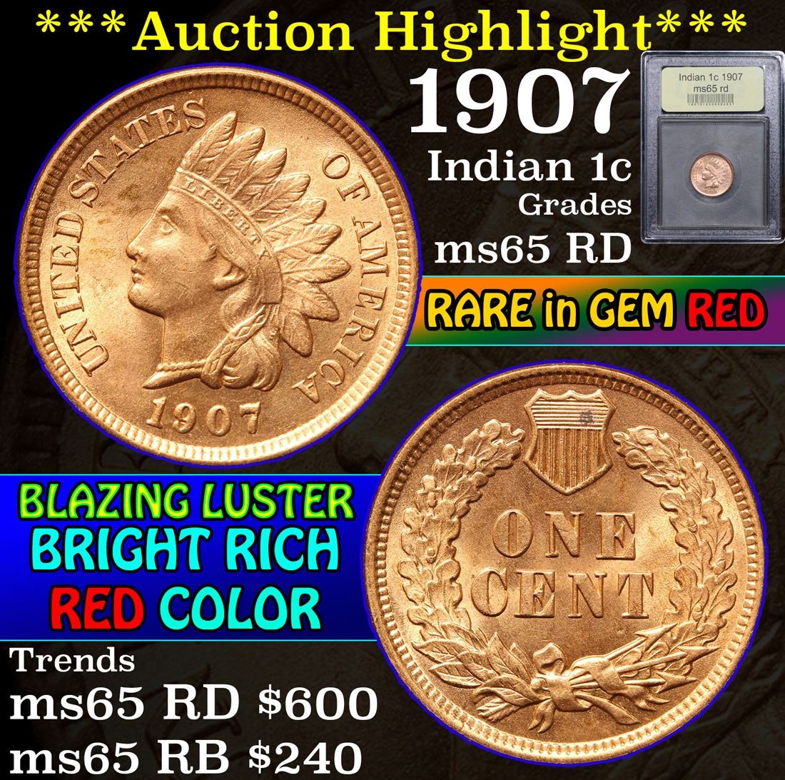 ***Auction Highlight*** 1907 Indian Cent 1c Graded GEM Unc RD By USCG.         A Corey's Pick