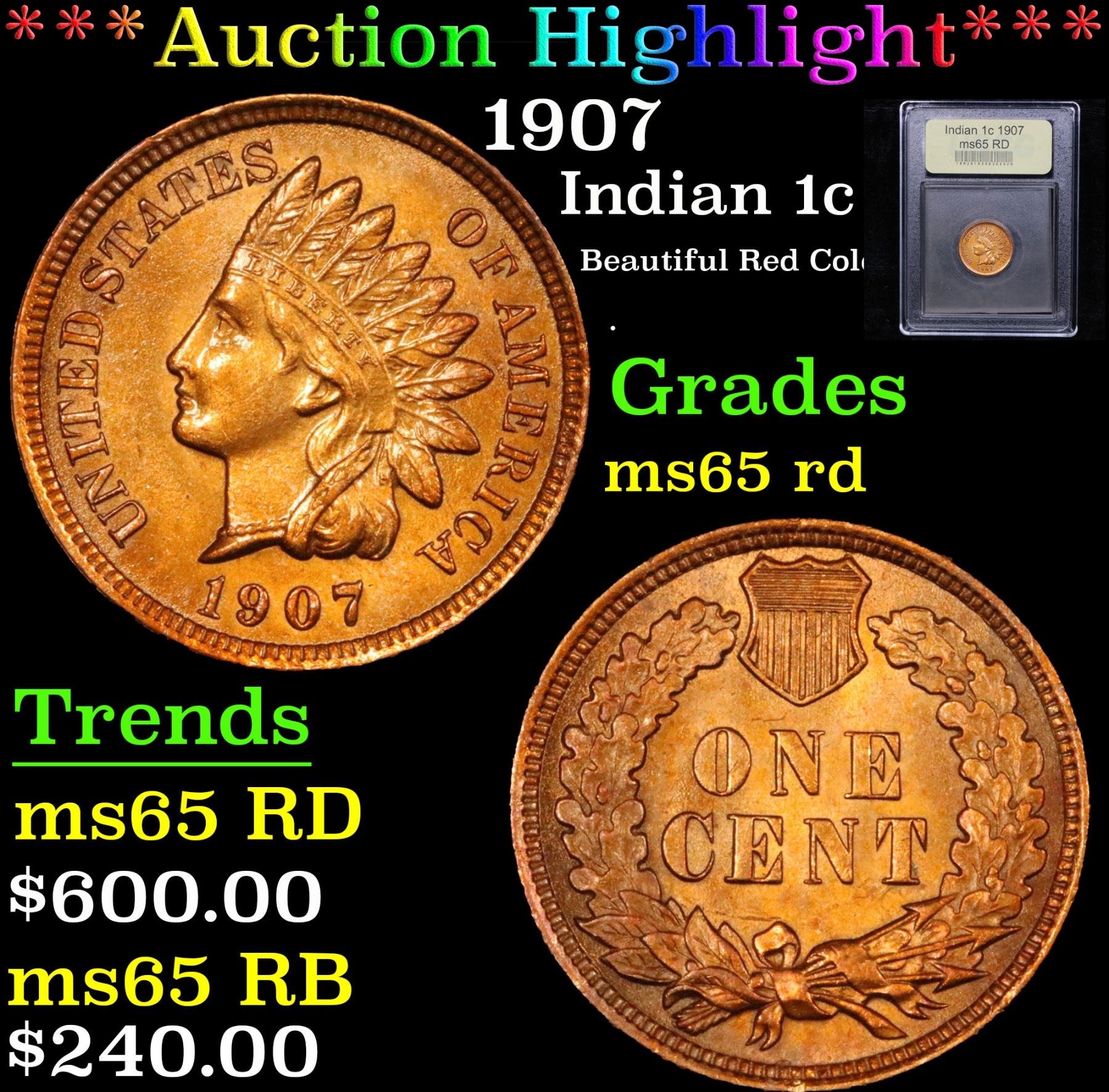 ***Auction Highlight*** 1907 Indian Cent 1c Graded GEM Unc RD By USCG. A Corey's Pick, Bid to Win, Don't let it get Away Coin