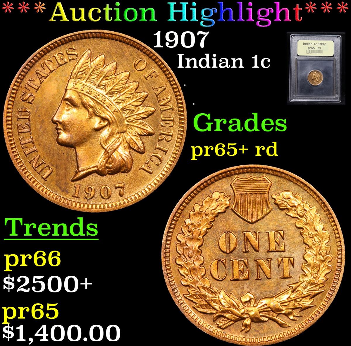 ***Auction Highlight*** 1907 . . Indian Cent 1c Graded Gem++ Proof Red By USCG. A Corey's Pick, Bid to Win, Don't let it get Away, you might not find its equal Coin