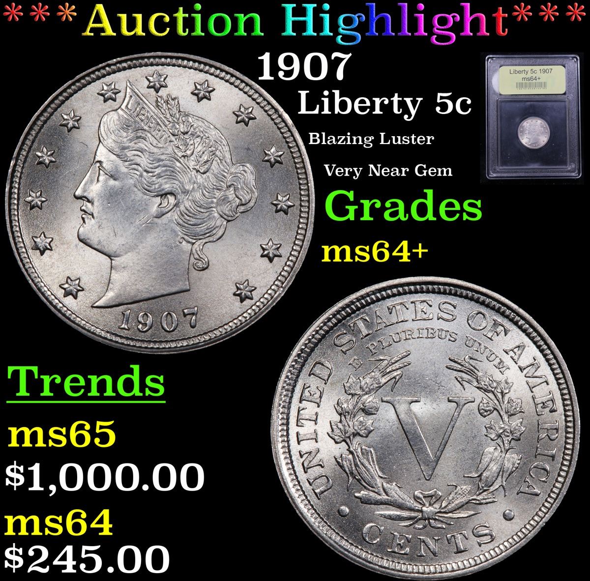***Auction Highlight*** 1907 Liberty Nickel 5c Graded Choice+ Unc By USCG. A Corey's Pick, Bid to Win Coin