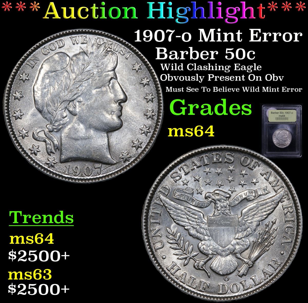 ***Auction Highlight*** 1907-o Mint Error Barber Half Dollars 50c Graded Choice Unc By USCG (fc)
