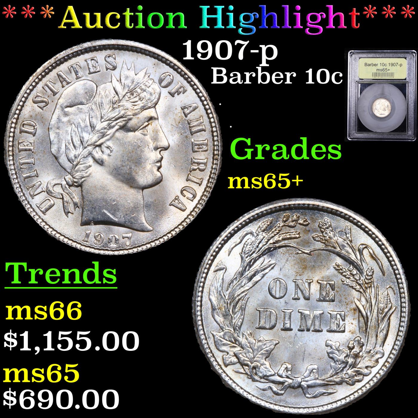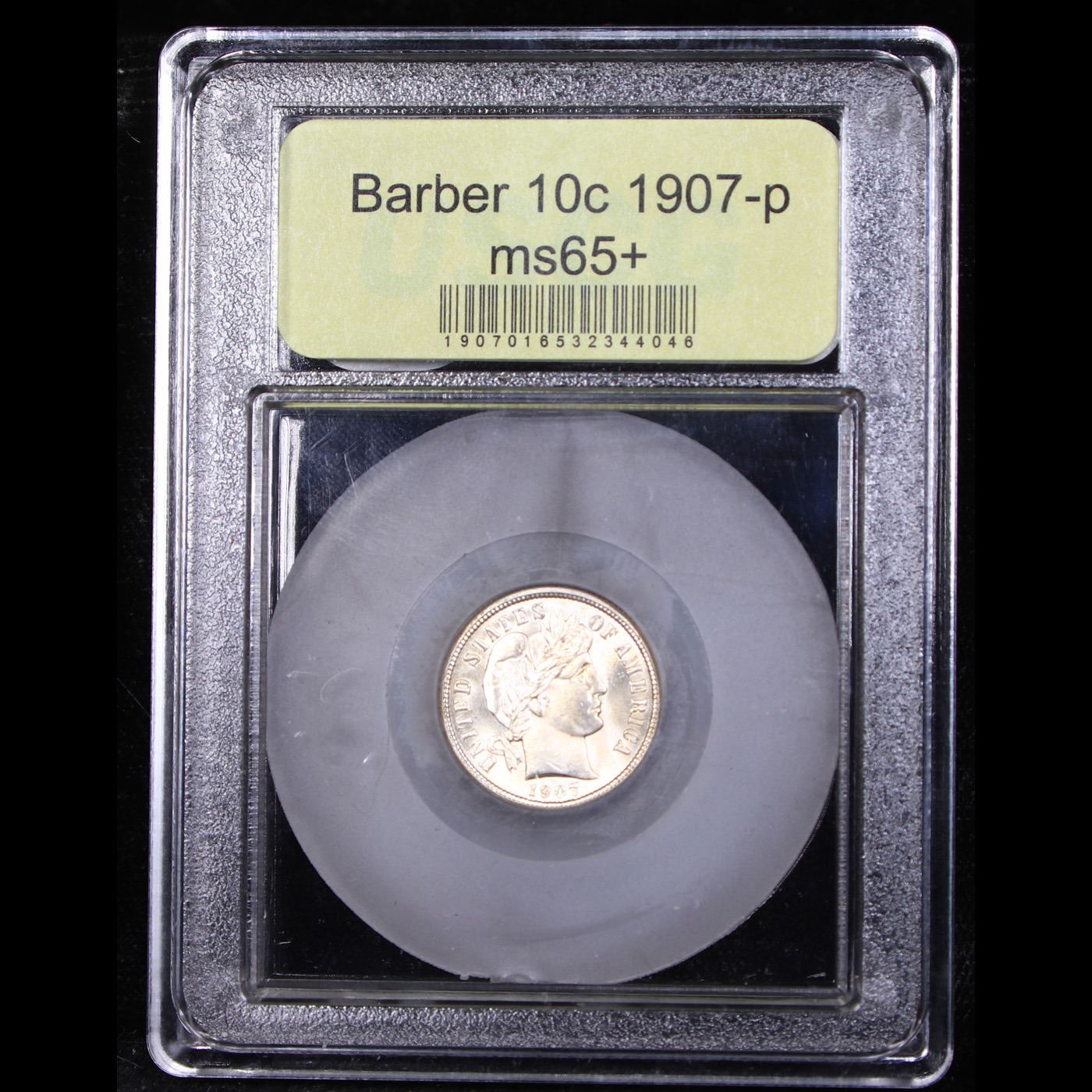 ***Auction Highlight*** 1907-p Barber Dime 10c Graded GEM+ Unc By USCG.