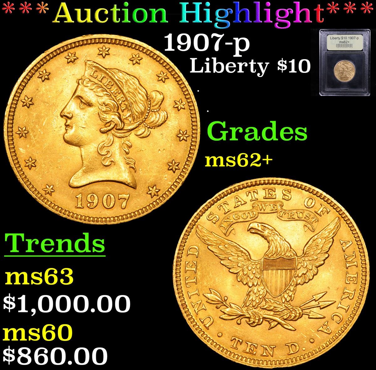 ***Auction Highlight*** 1907-p . . Gold Liberty Eagle $10 Graded Select Unc By USCG.