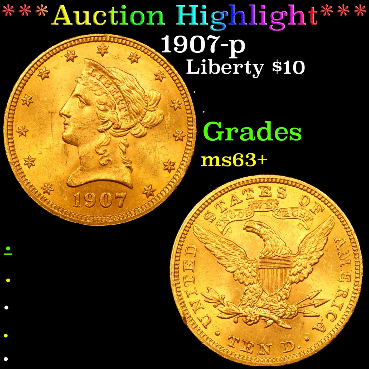 ***Auction Highlight*** 1907-p Gold Liberty Eagle $10 Grades Select+ Unc.