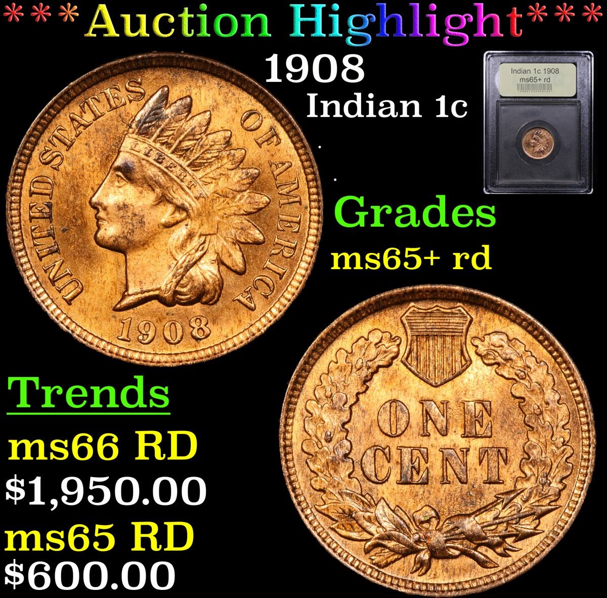 ***Auction Highlight*** 1908 . . Indian Cent 1c Graded Gem+ Unc RD By USCG. A Corey's Pick, Bid to Win Coin