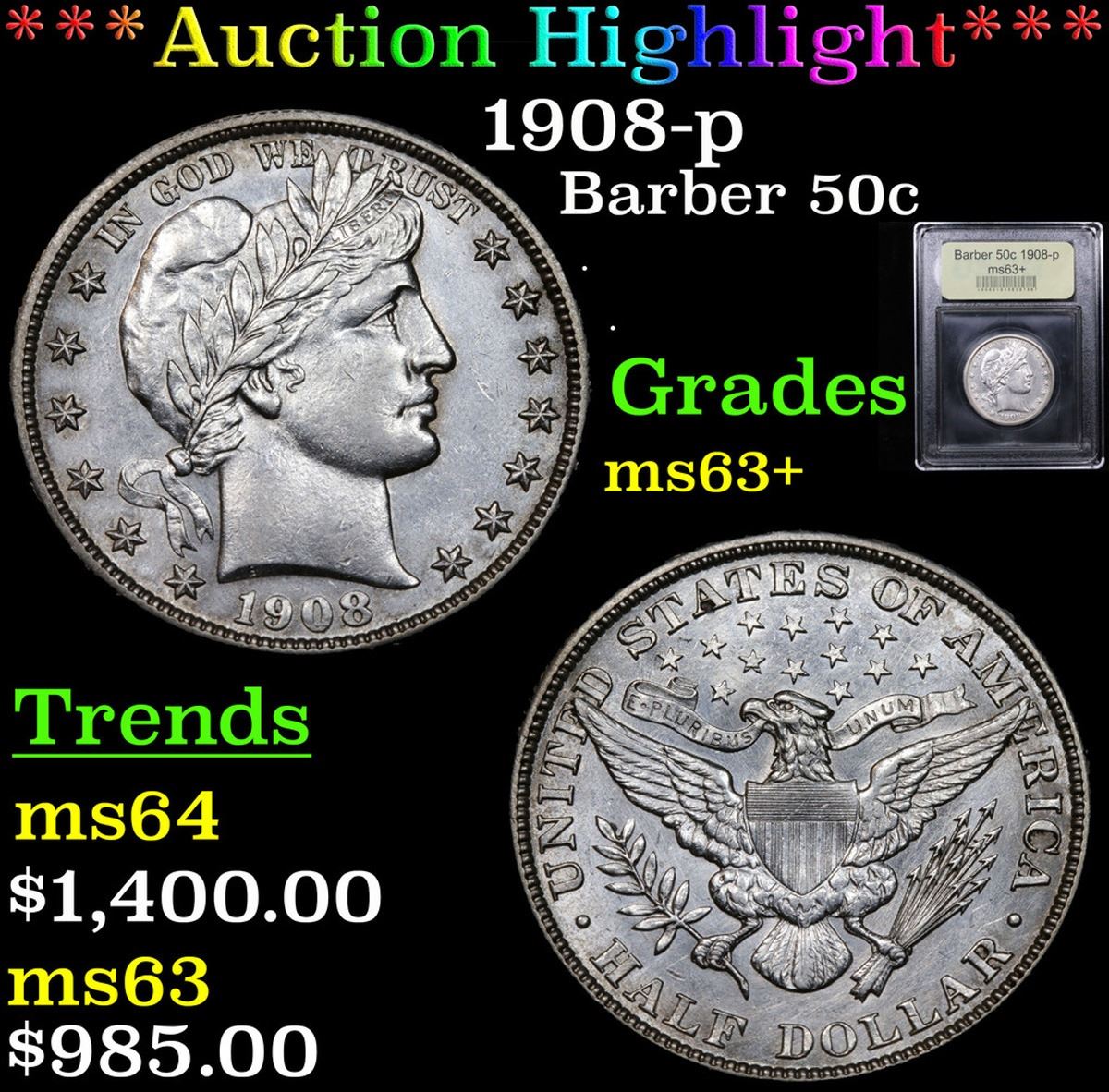 ***Auction Highlight*** 1908-p Barber Half Dollars 50c Graded Select+ Unc By USCG. A Corey's Pick, Bid to Win, Don't let it get Away Coin
