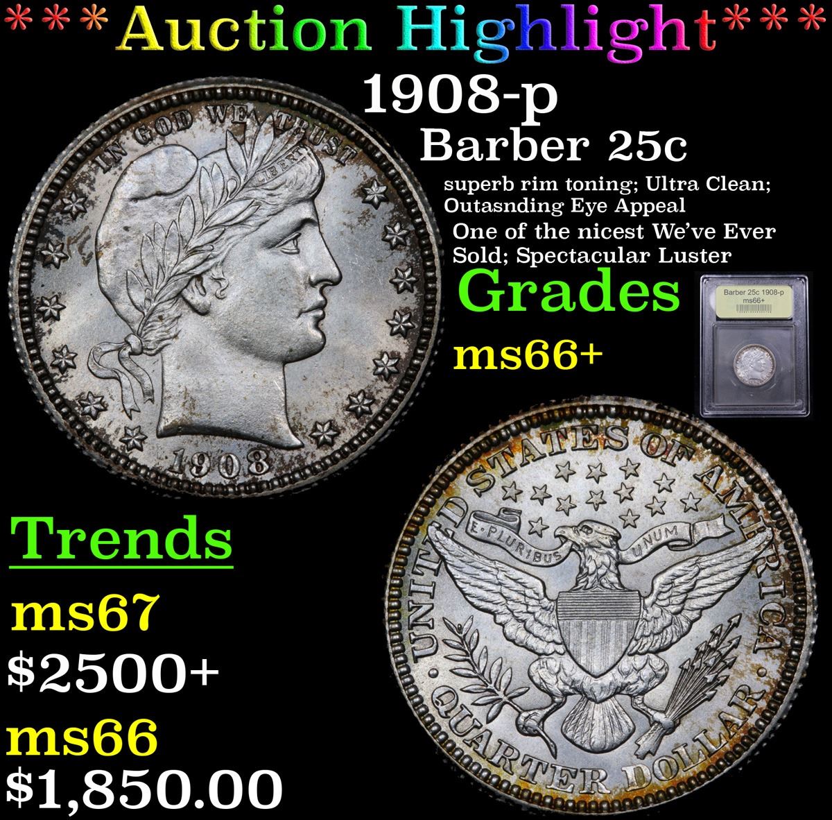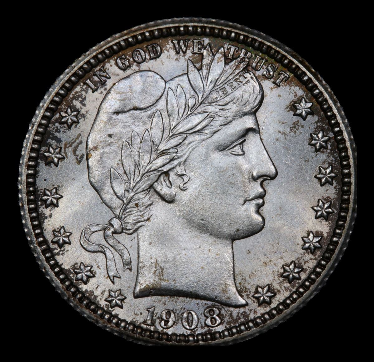 ***Auction Highlight*** 1908-p Barber Quarter 25c Graded GEM++ Unc By USCG. 0