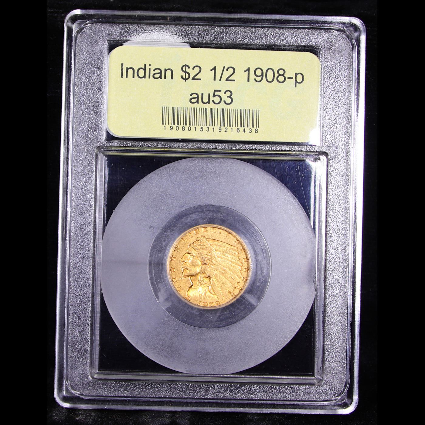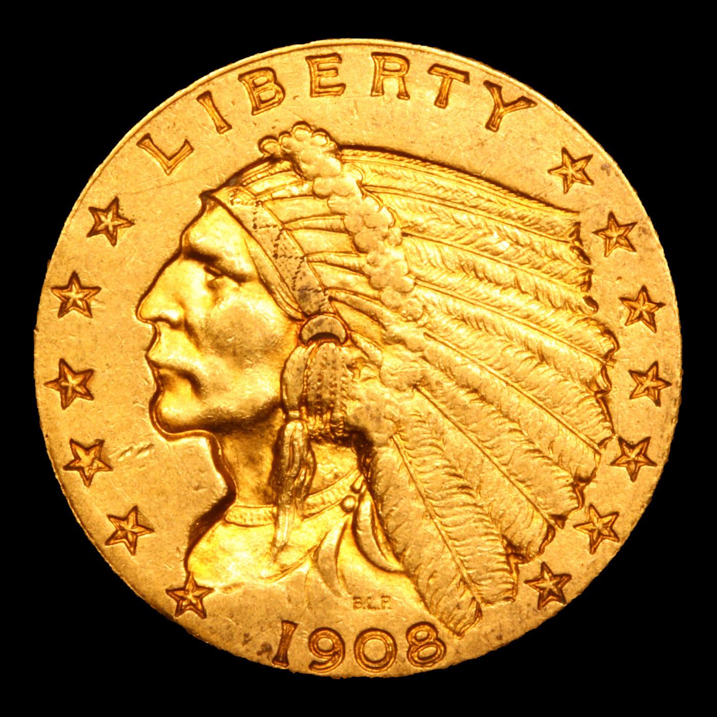 ***Auction Highlight*** 1908-p Gold Indian Quarter Eagle $2 1/2 Graded Select AU by USCG (fc)