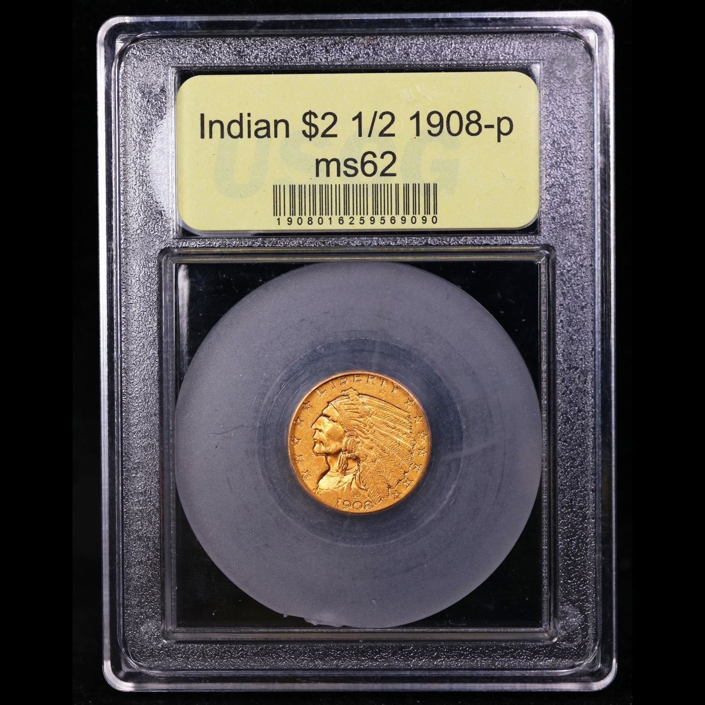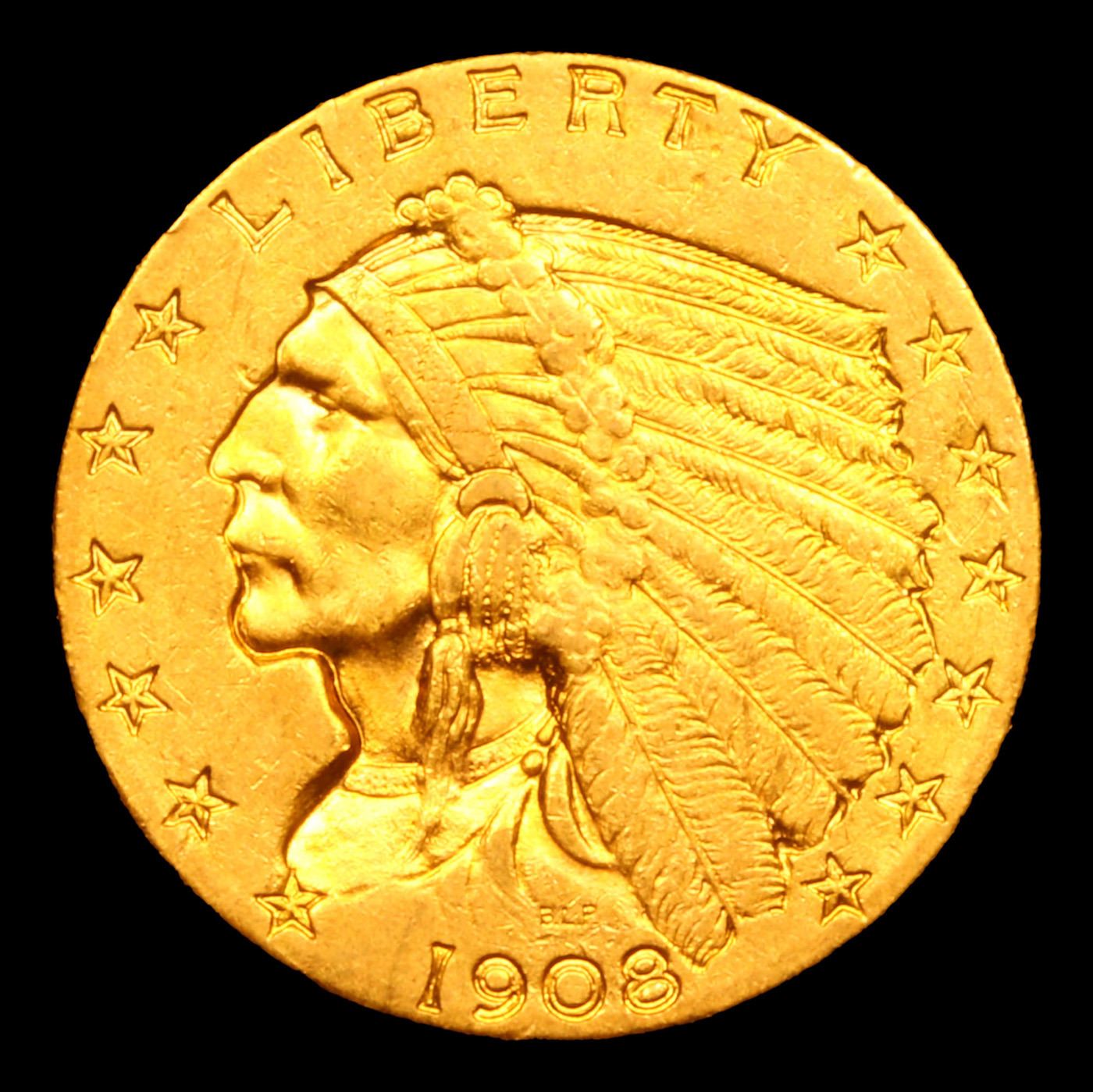 ***Auction Highlight*** 1908-p Gold Indian Quarter Eagle $2 1/2 Graded Select Unc BY USCG (fc)