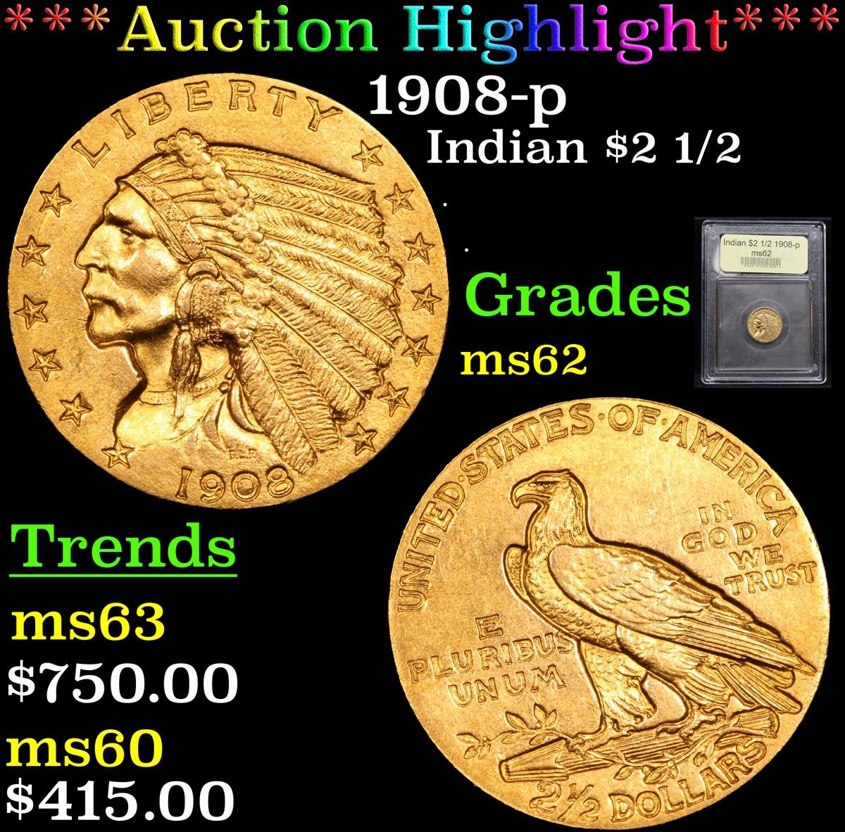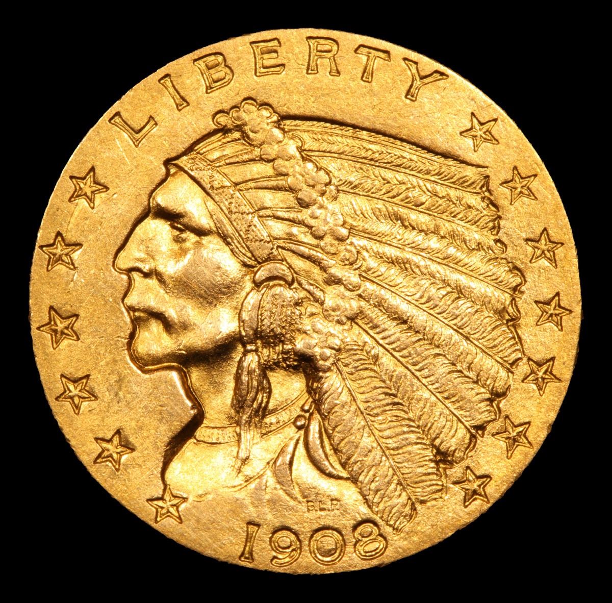 ***Auction Highlight*** 1908-p . . Gold Indian Quarter Eagle $2 1/2 Graded Select Unc By USCG.