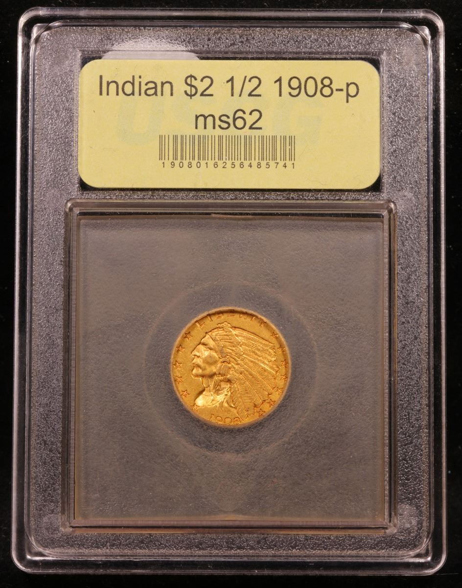 ***Auction Highlight*** 1908-p Gold Indian Quarter Eagle $2 1/2 Graded Select Unc By USCG (fc)