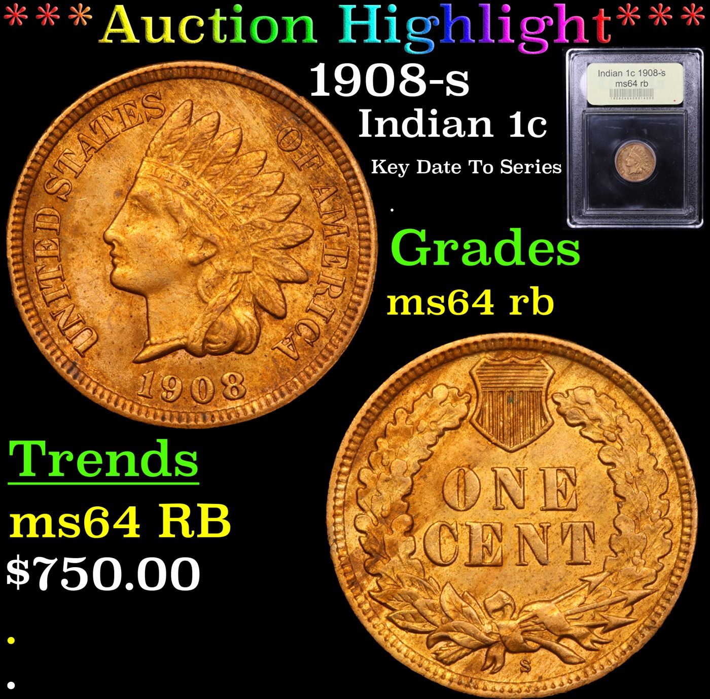 ***Auction Highlight*** 1908-s Indian Cent 1c Graded Choice Unc RB By USCG. very scarce. Per PCGS :"The 1908-S Indian cent is the third lowest mintage circulation strike Indian cent. The only two other lower mintage coins in the series are the 1877 and the 1909-S, with the latter being the lowest mintage in the entire series." also PCGS estimates only 3000 survive in all grades A Corey's Pick, Bid to Win Coin