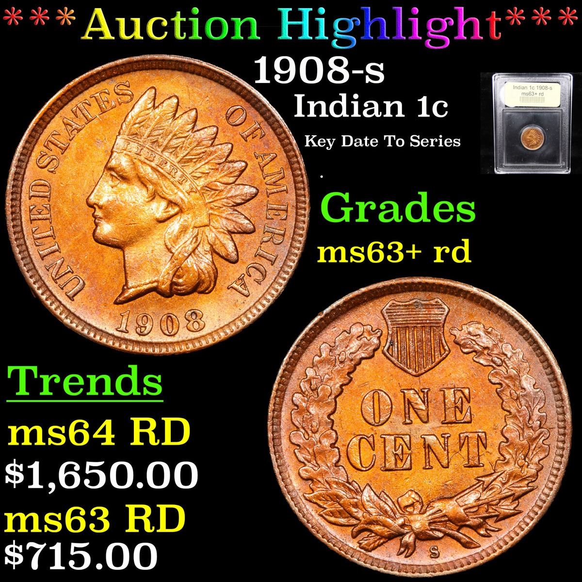 ***Auction Highlight*** 1908-s Key Date To Series . Indian Cent 1c Graded Select+ Unc RD By USCG. very scarce. Per PCGS :"The 1908-S Indian cent is the third lowest mintage circulation strike Indian cent. The only two other lower mintage coins in the series are the 1877 and the 1909-S, with the latter being the lowest mintage in the entire series." also PCGS estimates only 3000 survive in all grades A Corey's Pick, Bid to Win Coin