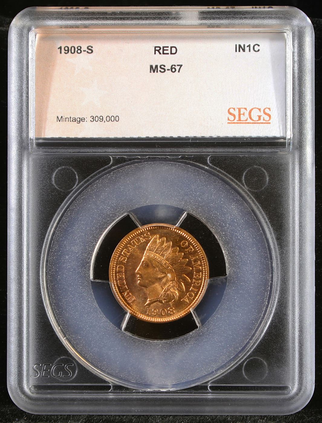 ***Auction Highlight*** 1908-s TOP POP! Indian Cent 1c Graded ms67 rd By SEGS. A Corey's Pick, Bid to Win, Don't let it get Away, you might not find its equal Coin. I give this coin my highest recommendation