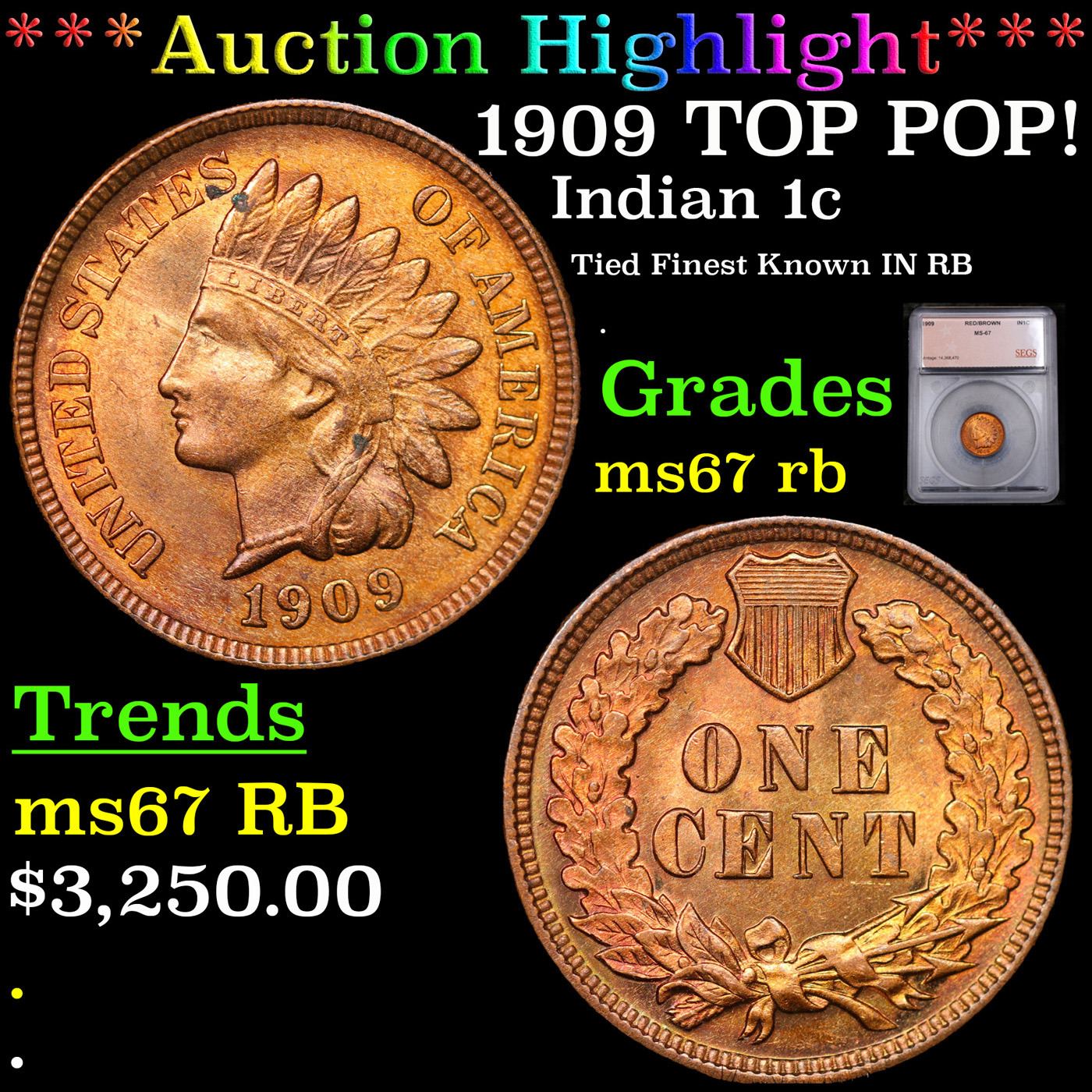 ***Auction Highlight*** 1909 TOP POP! Indian Cent 1c Graded ms67 rb BY SEGS. A Corey's Pick, Bid to Win, Don't let it get Away, you might not find its equal Coin. I give this coin my highest recommendation