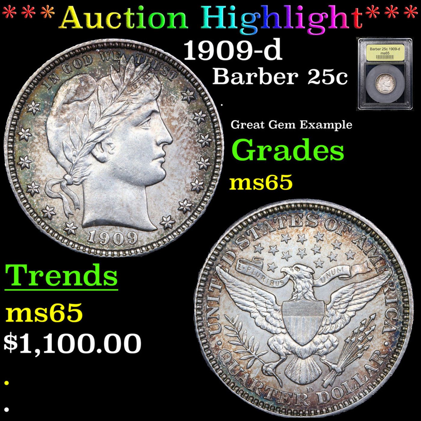 ***Auction Highlight*** 1909-d Barber Quarter 25c Graded GEM Unc BY USCG. A Corey's Pick, Bid to Win Coin