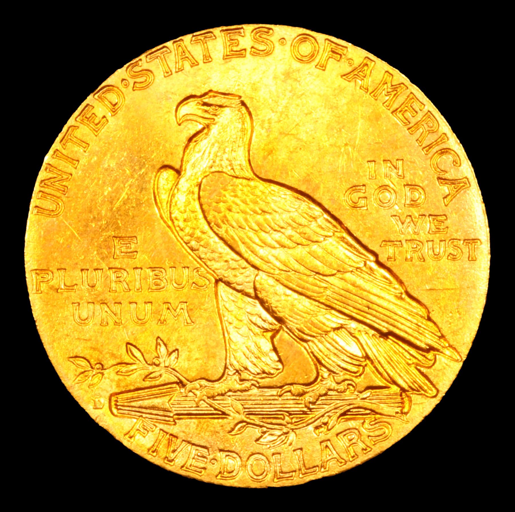 ***Auction Highlight*** 1909-d Gold Indian Half Eagle $5 Graded Choice+ Unc BY USCG. A Corey's Pick, Bid to Win, Don't let it get Away Coin