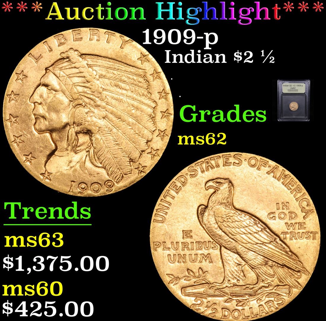 ***Auction Highlight*** 1909-p . . Gold Indian Quarter Eagle $2 1/2 Graded Select Unc By USCG.