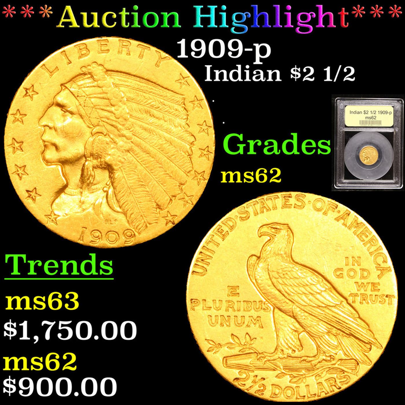***Auction Highlight*** 1909-p Gold Indian Quarter Eagle 2.5 Graded Select Unc By USCG (fc)