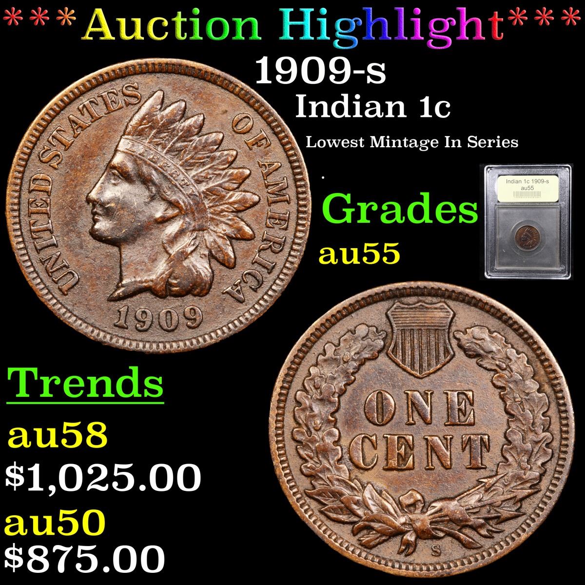 ***Auction Highlight*** 1909-s Indian Cent 1c Graded Choice AU By USCG. A Corey's Pick, Bid to Win Coin