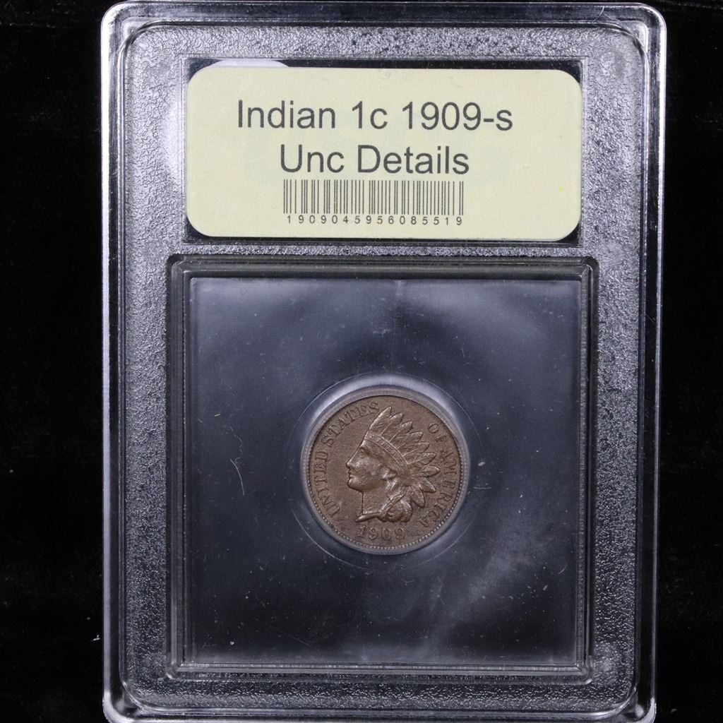 ***Auction Highlight*** 1909-s Lowest Mintage In Series Indian Cent 1c Graded Unc Details By USCG.