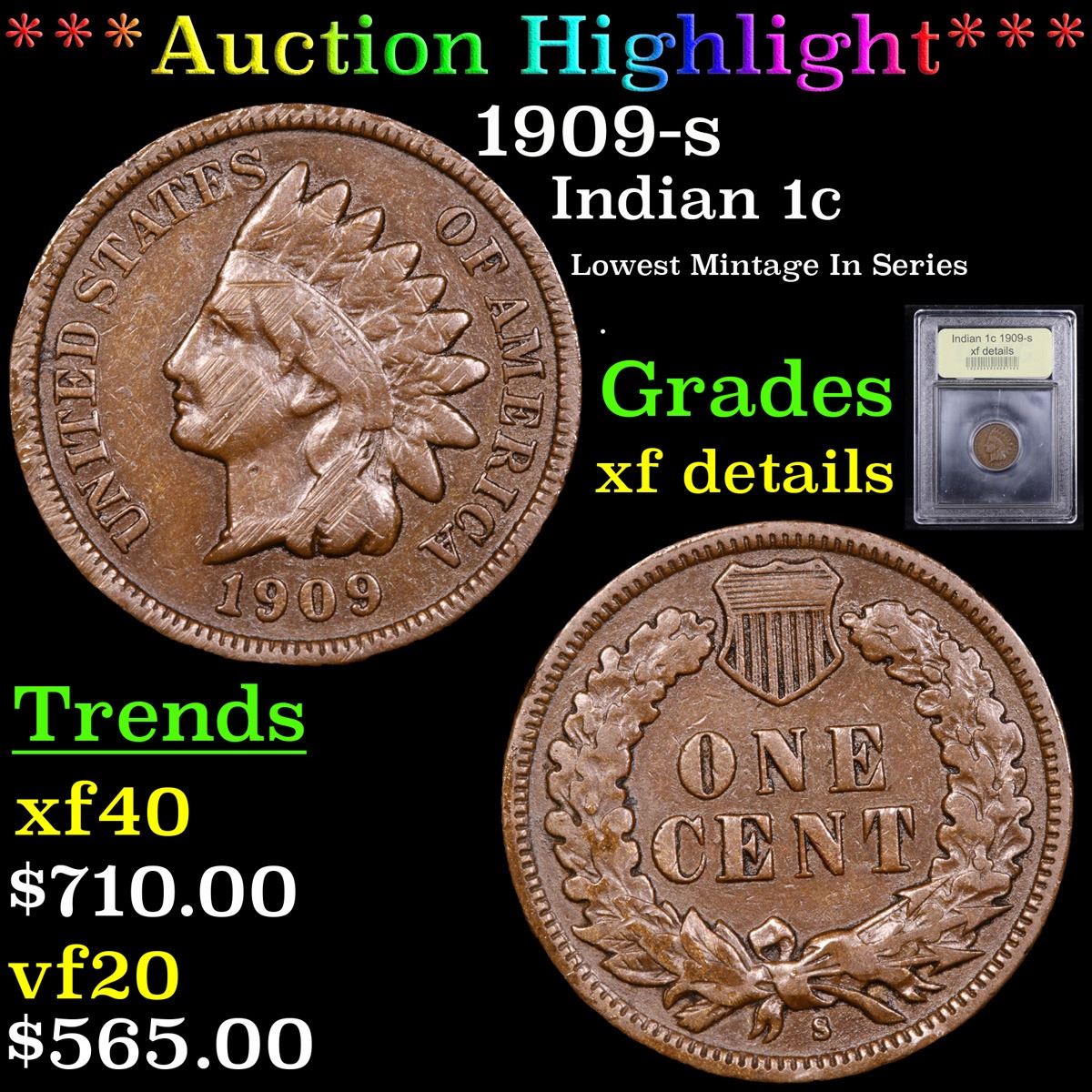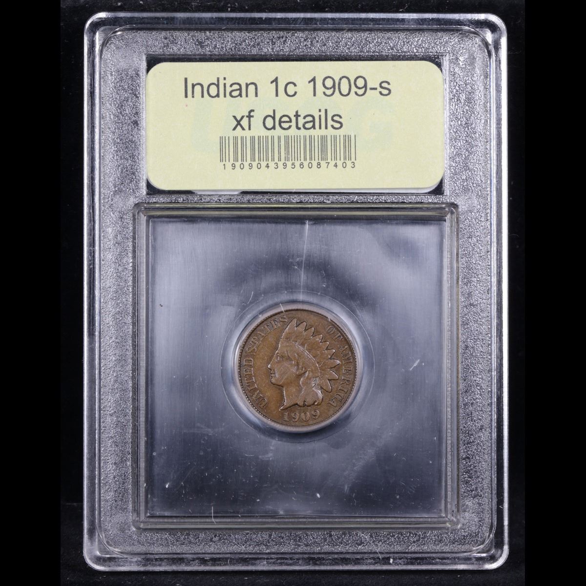 ***Auction Highlight*** 1909-s Lowest Mintage In Series . Indian Cent 1c Graded xf details By USCG.