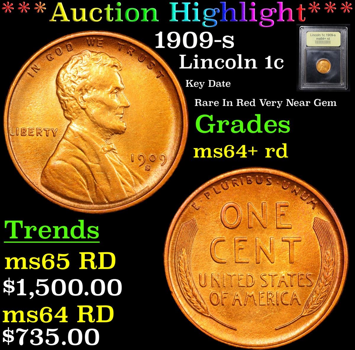 ***Auction Highlight*** 1909-s Key Date Rare In Red Very Near Gem Lincoln Cent 1c Graded Choice+ Unc RD By USCG. A Corey's Pick, Bid to Win, Don't let it get Away Coin