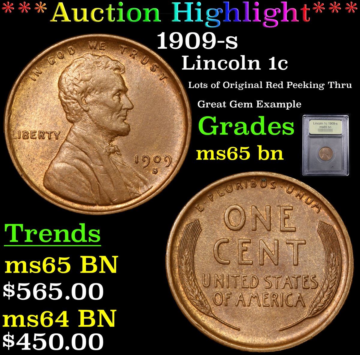 ***Auction Highlight*** 1909-s Lincoln Cent 1c Graded GEM Unc BN By USCG. 0