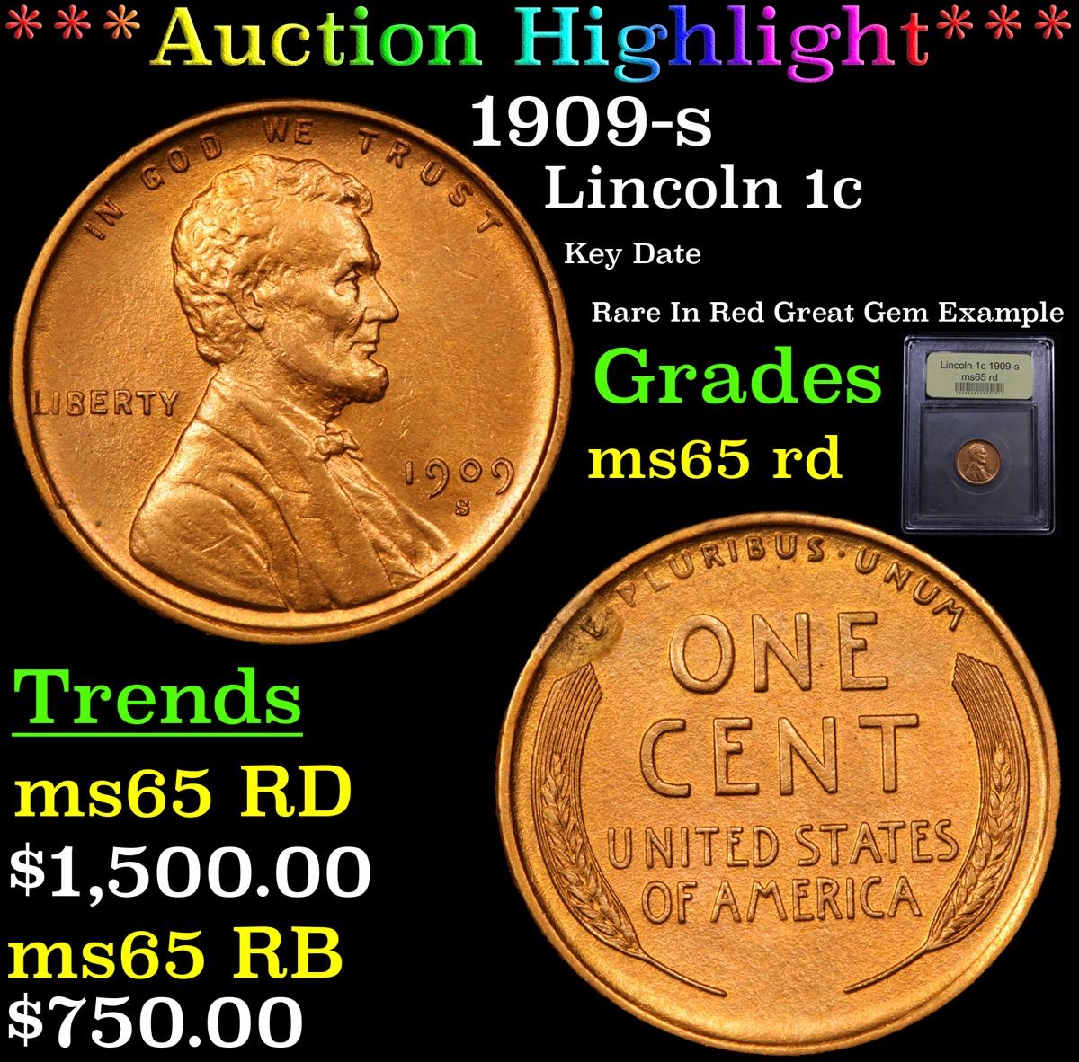 ***Auction Highlight*** 1909-s Lincoln Cent 1c Graded GEM Unc RD By USCG. 0