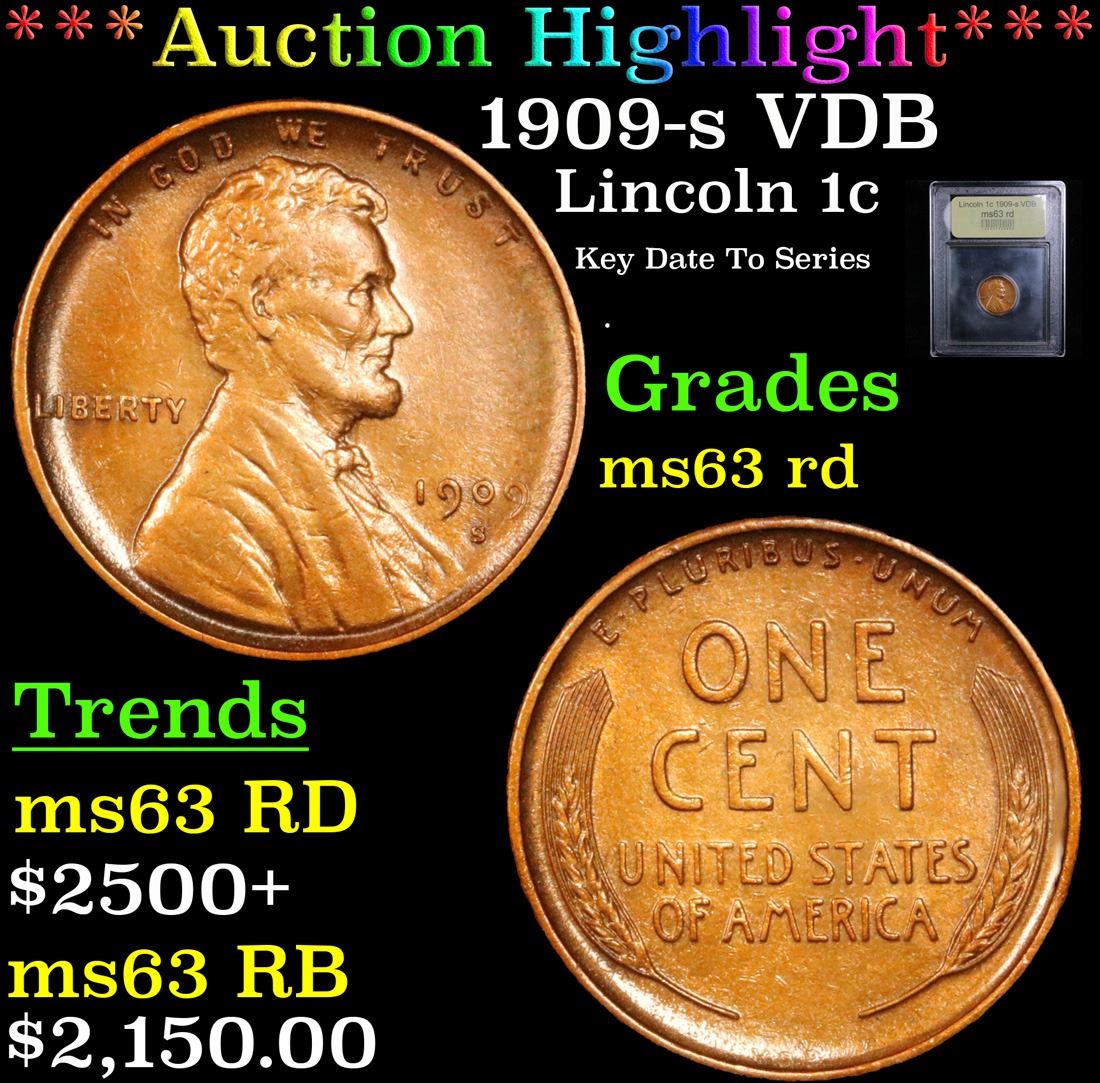 ***Auction Highlight*** 1909-s VDB Key Date To Series . Lincoln Cent 1c Graded Select Unc RD By USCG. Key Date to the series and a true numismatic rarity and perhaps he most well known coin outside numismatists. A Corey's Pick, Bid to Win, Don't let it get Away Coin