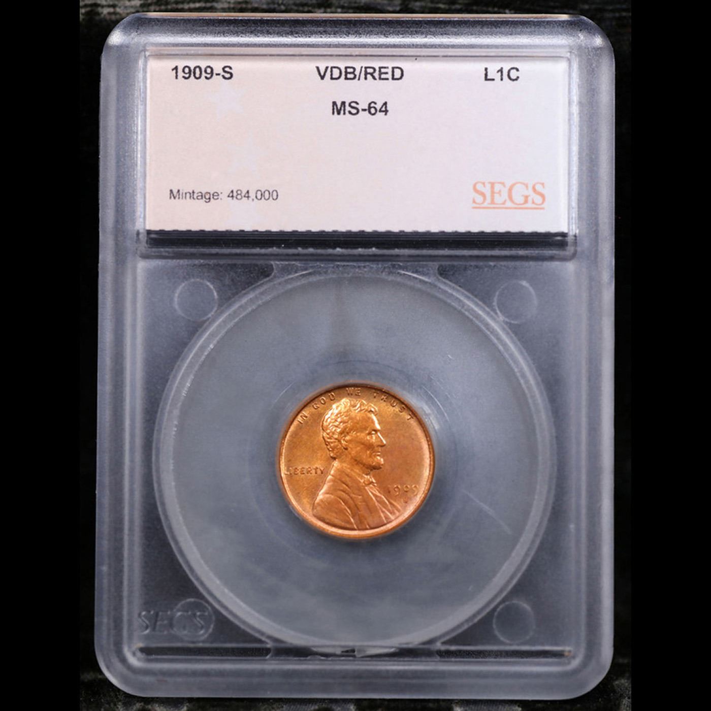 ***Auction Highlight*** 1909-s VDB Lincoln Cent 1c Graded ms64 rd By SEGS. Key Date to the series and a true numismatic rarity and perhaps he most well known coin outside numismatists. A Corey's Pick, Bid to Win, Don't let it get Away Coin
