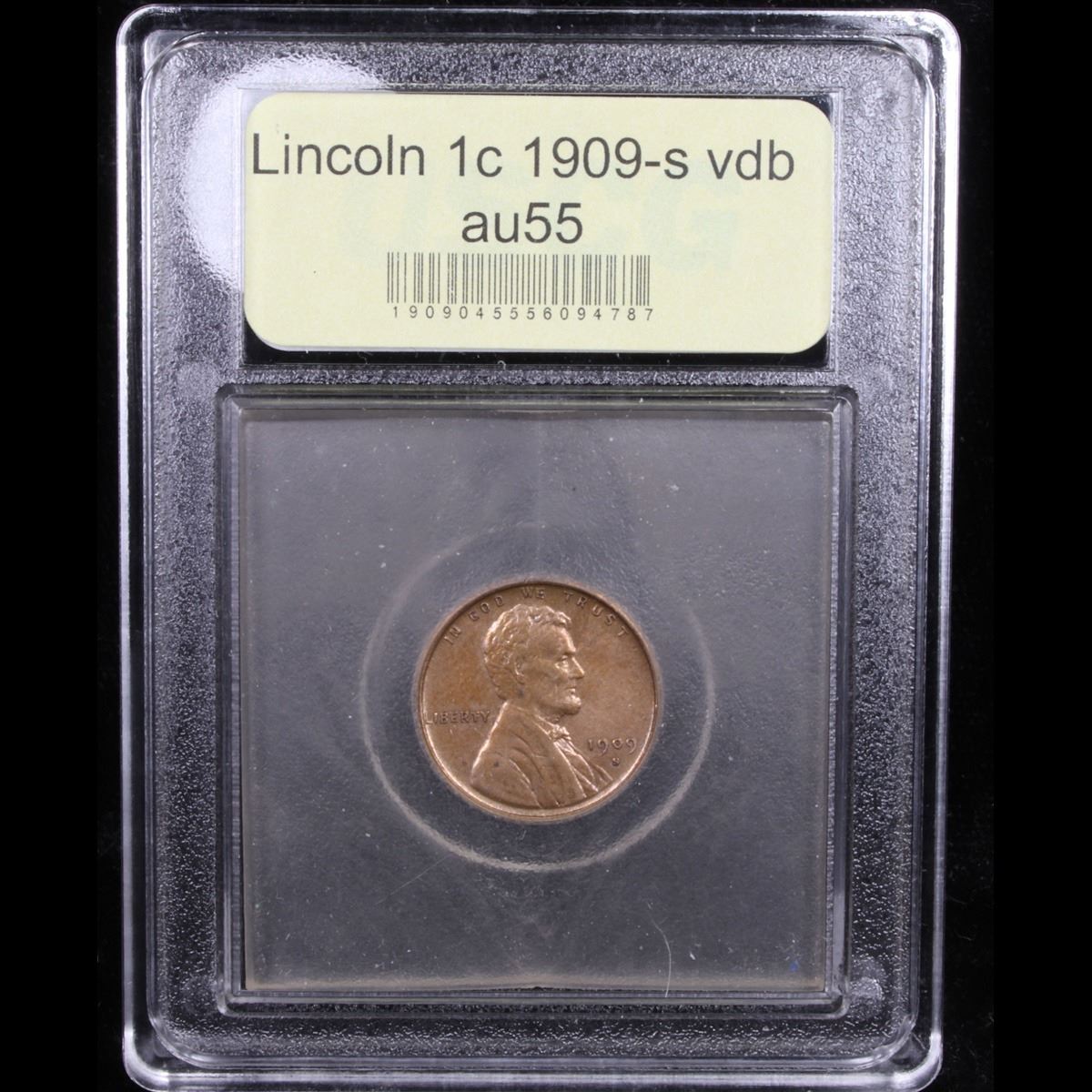 ***Auction Highlight*** 1909-s vdb Key Date To Series . Lincoln Cent 1c Graded Choice AU by USCG. Key Date to the series and a true numismatic rarity and perhaps he most well known coin outside numismatists. A Corey's Pick, Bid to Win Coin