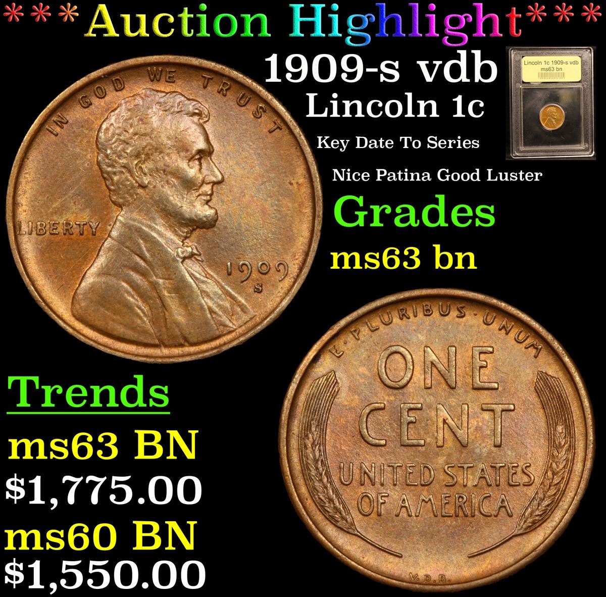 ***Auction Highlight*** 1909-s vdb Lincoln Cent 1c Graded Select Unc BN By USCG. Key Date to the series and a true numismatic rarity and perhaps he most well known coin outside numismatists. A Corey's Pick, Bid to Win, Don't let it get Away, you might not find its equal Coin