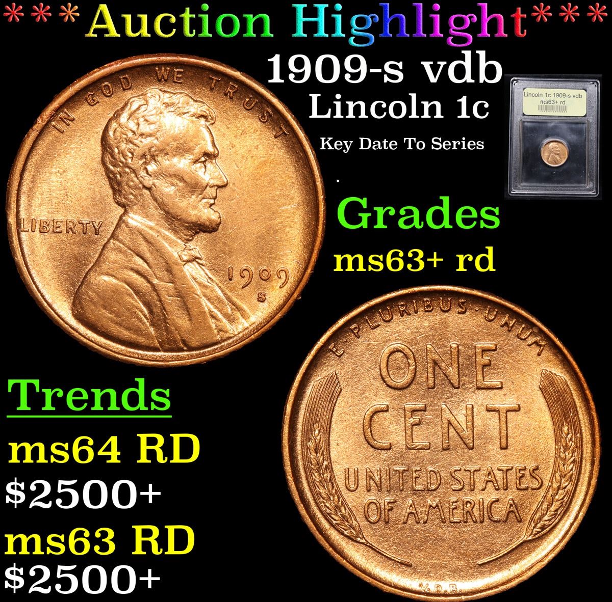 ***Auction Highlight*** 1909-s vdb Key Date To Series . Lincoln Cent 1c Graded Select+ Unc RD By USCG. Key Date to the series and a true numismatic rarity and perhaps he most well known coin outside numismatists. A Corey's Pick, Bid to Win, Don't let it get Away Coin