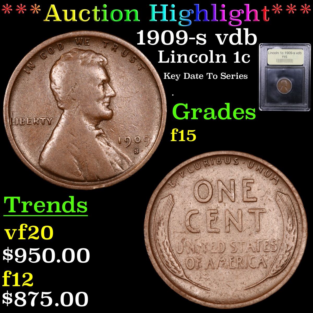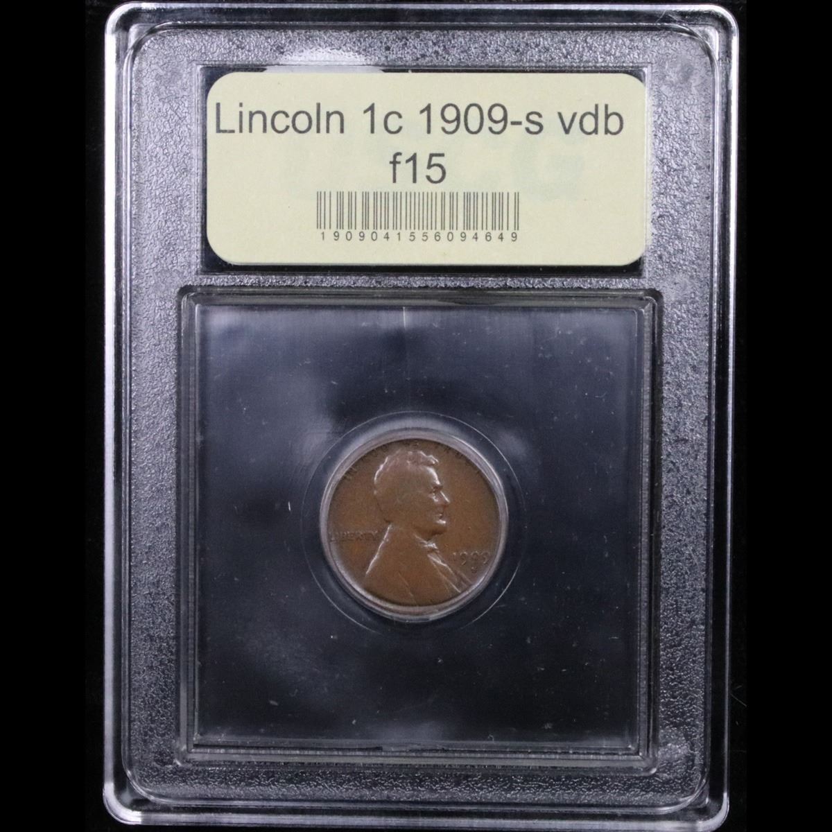 ***Auction Highlight*** 1909-s vdb Key Date To Series . Lincoln Cent 1c Graded f+ By USCG. Key Date to the series and a true numismatic rarity and perhaps he most well known coin outside numismatists. A Corey's Pick, Bid to Win, Don't let it get Away Coin