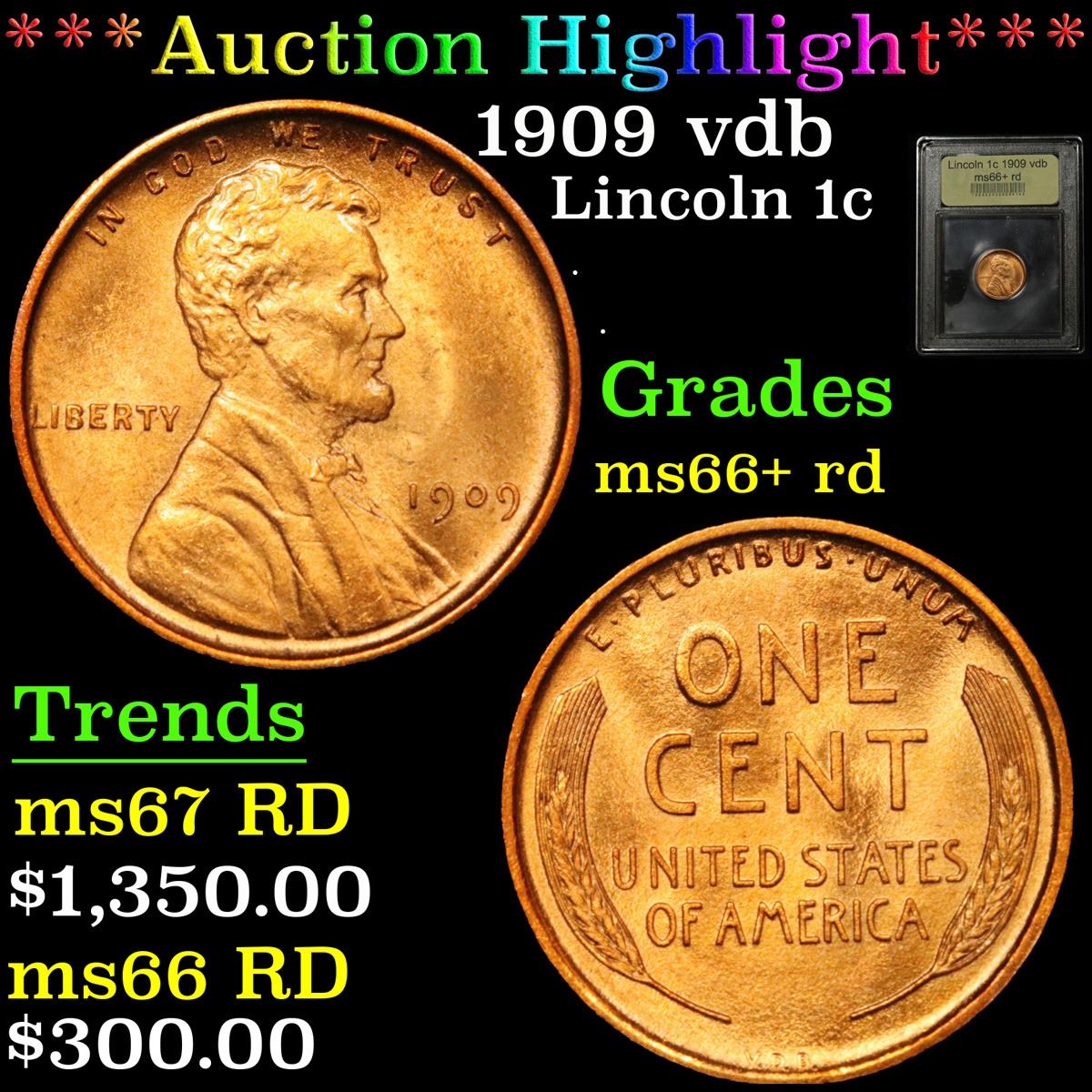 ***Auction Highlight*** 1909 vdb . . Lincoln Cent 1c Graded GEM++ RD By USCG. Always sought after date. Always popular. A Corey's Pick, Bid to Win, Don't let it get Away Coin