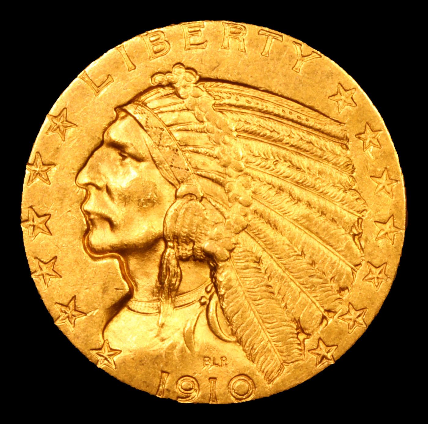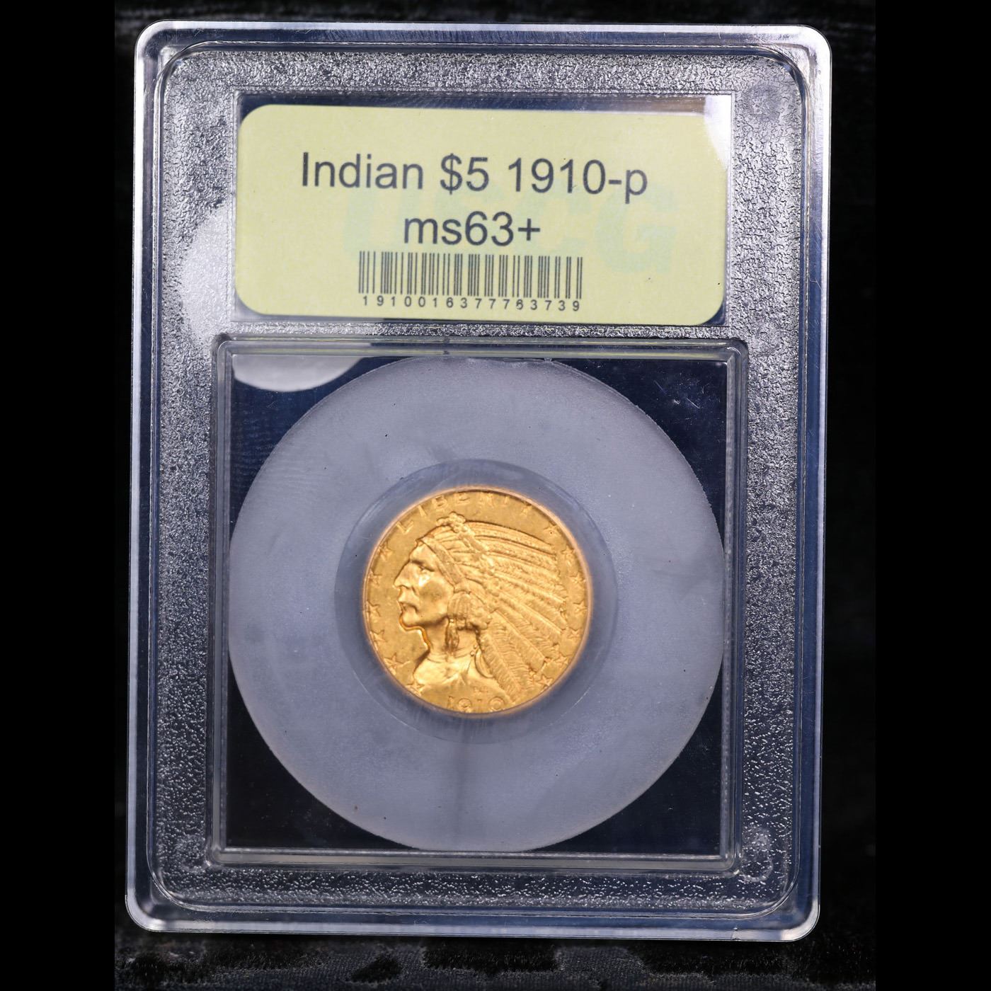 ***Auction Highlight*** 1910-p Gold Indian Half Eagle $5 Graded Select+ Unc By USCG.