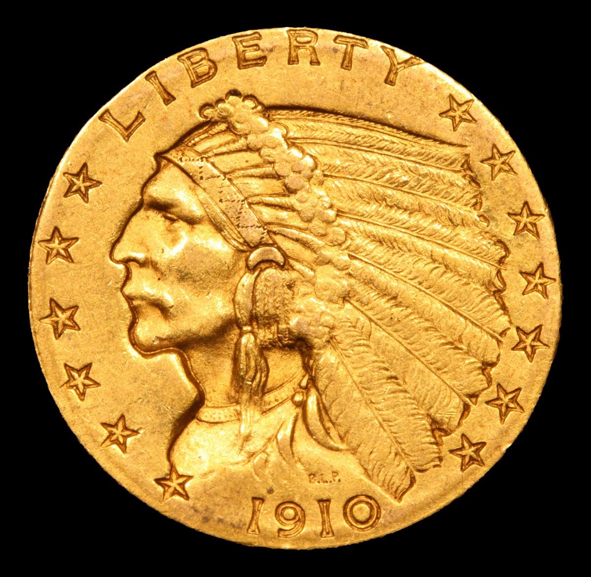 ***Auction Highlight*** 1910-p Gold Indian Quarter Eagle $2 1/2 Graded Select Unc By USCG (fc)