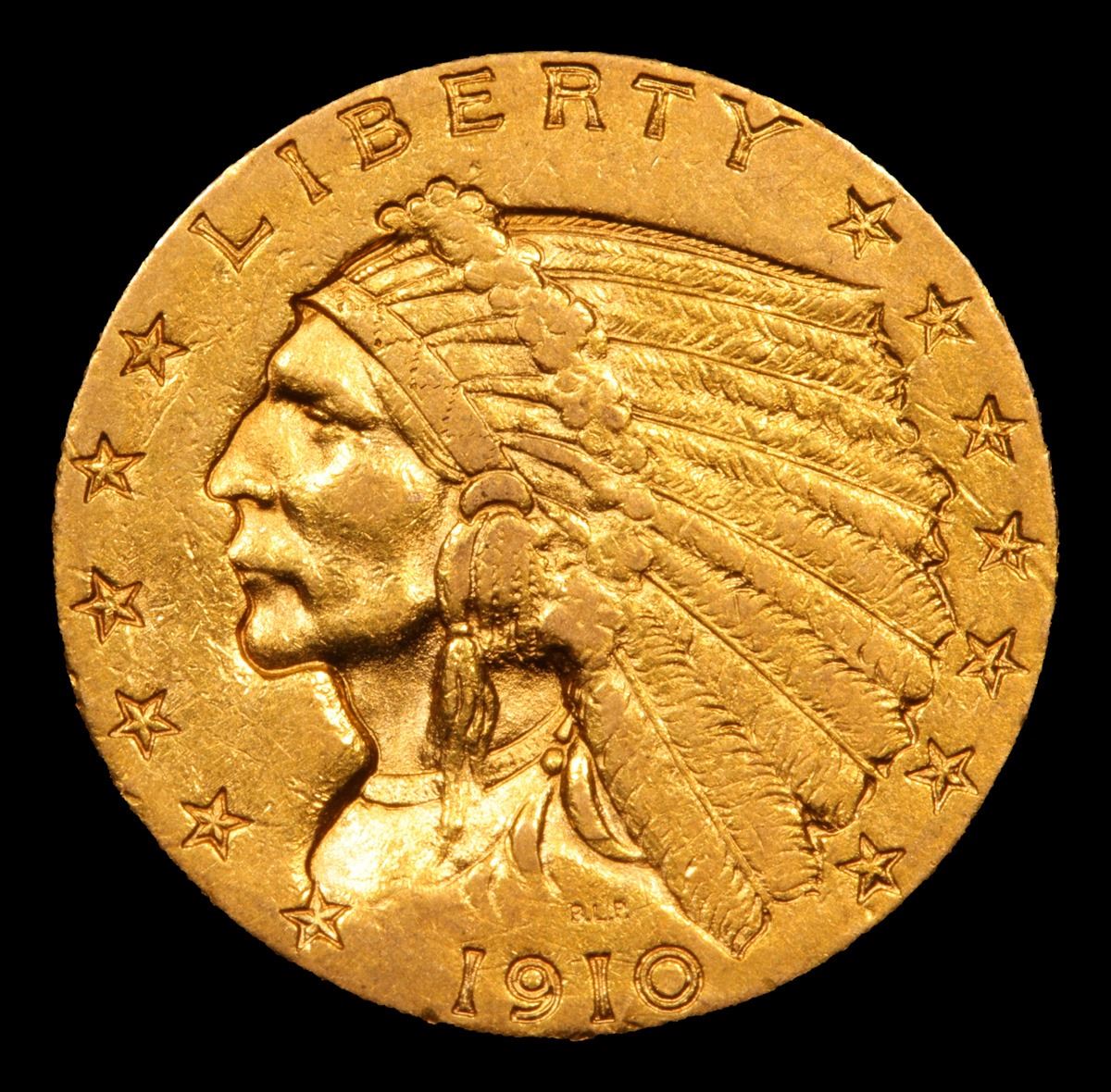 ***Auction Highlight*** 1910-p Gold Indian Quarter Eagle $2 1/2 Graded Select Unc By USCG (fc)
