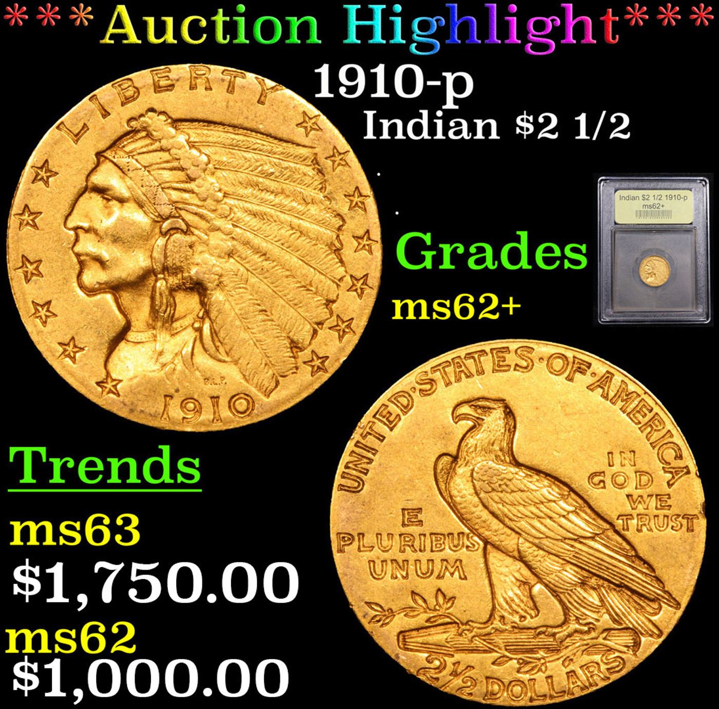 ***Auction Highlight*** 1910-p Gold Indian Quarter Eagle $2 1/2 Graded Select Unc By USCG.