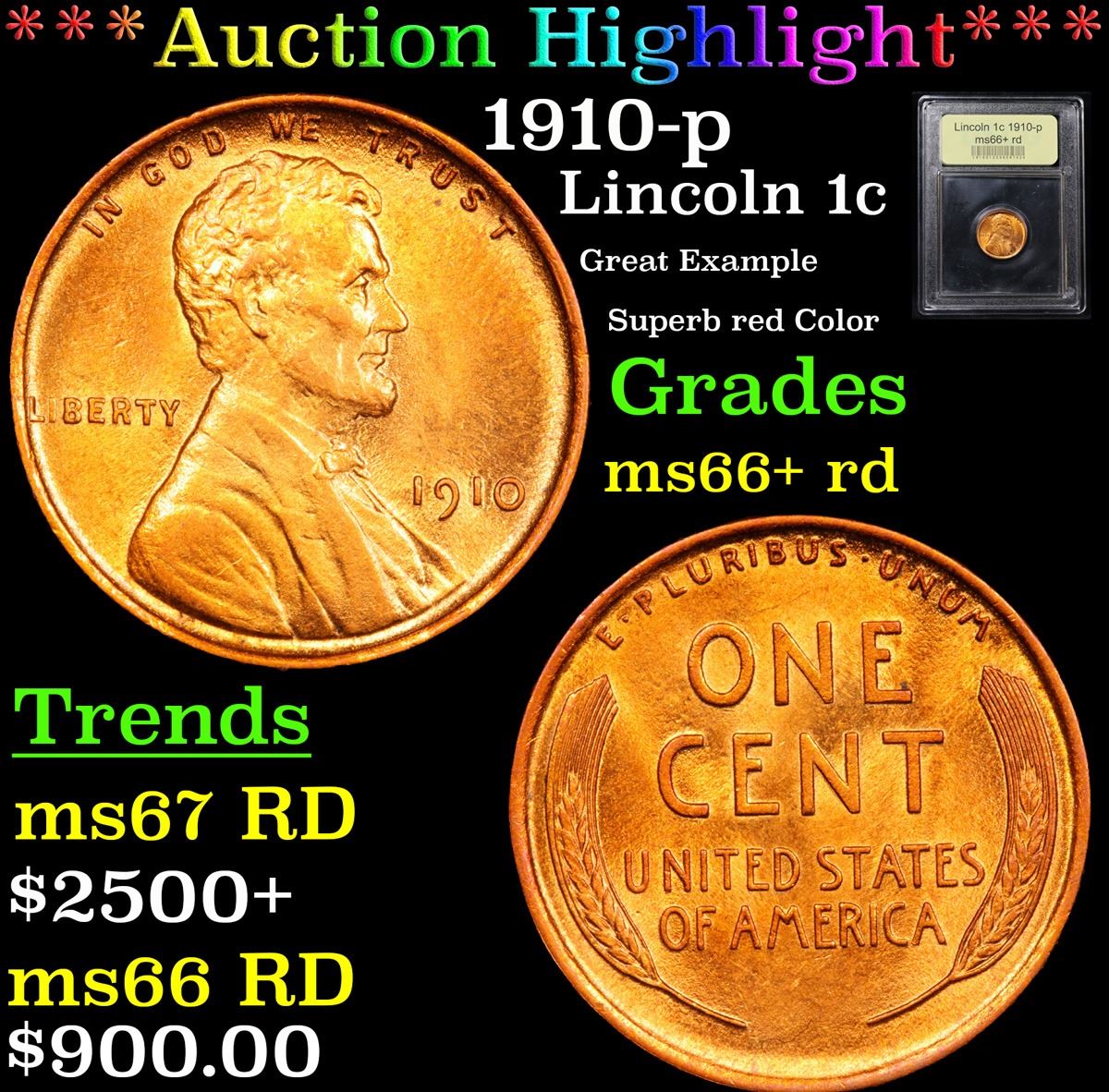 ***Auction Highlight*** 1910-p Great Example Superb red Color Lincoln Cent 1c Graded GEM++ RD By USCG. A Corey's Pick, Bid to Win, Don't let it get Away Coin