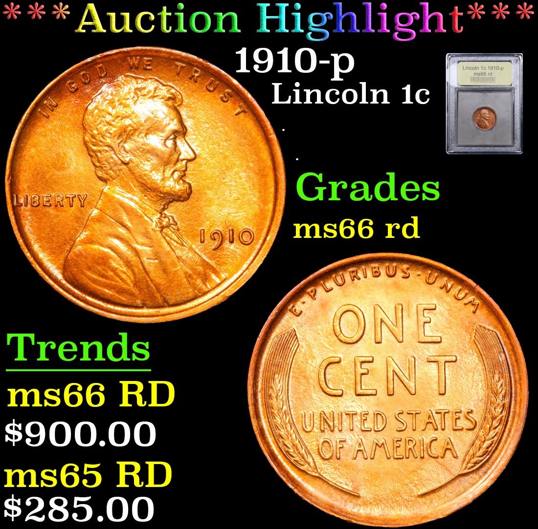 ***Auction Highlight*** 1910-p . . Lincoln Cent 1c Graded GEM+ Unc RD By USCG.         A Corey's Pick